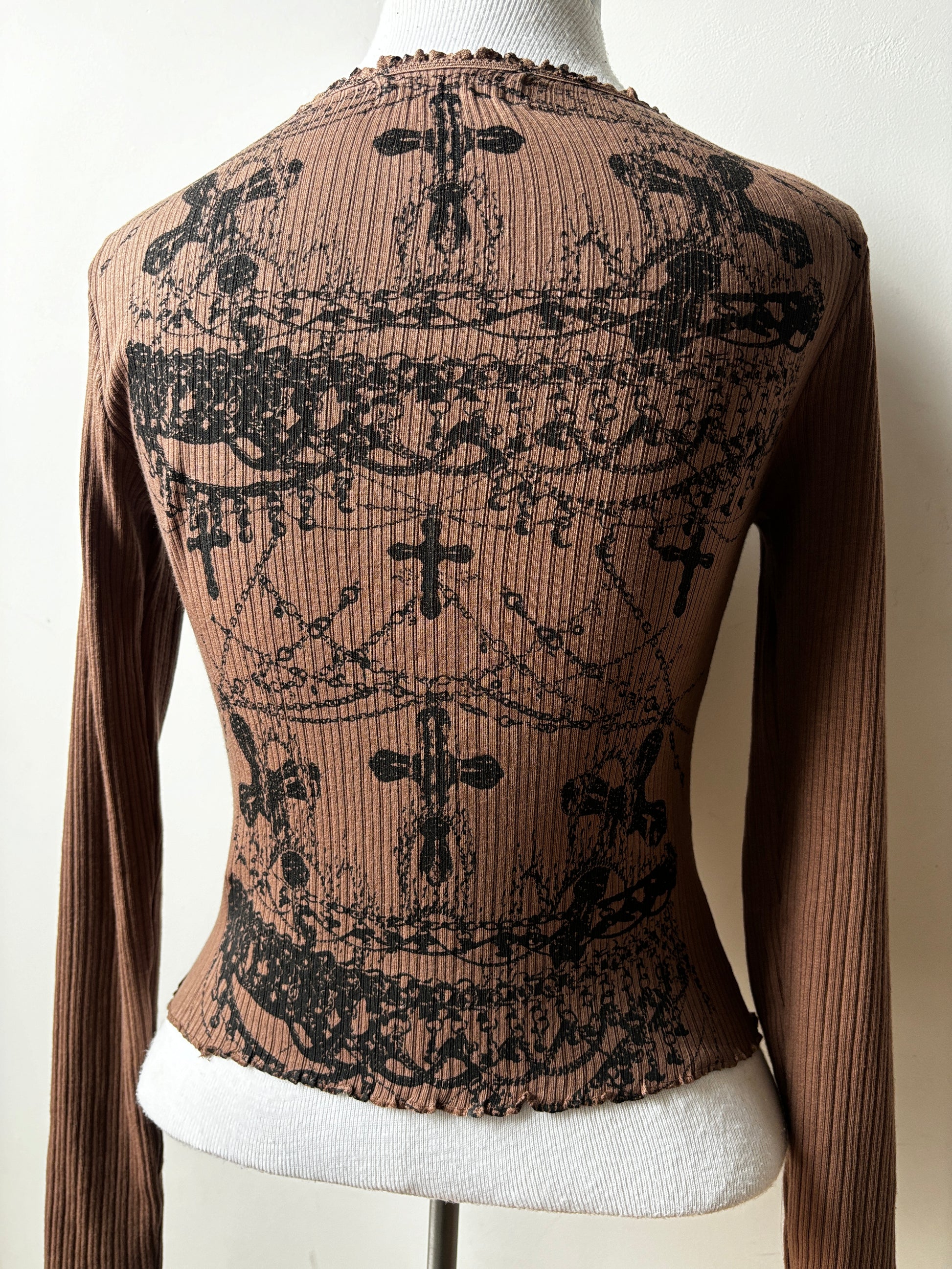 small - unstretched pit to pit: 13" stretches to 23" , length: 18"